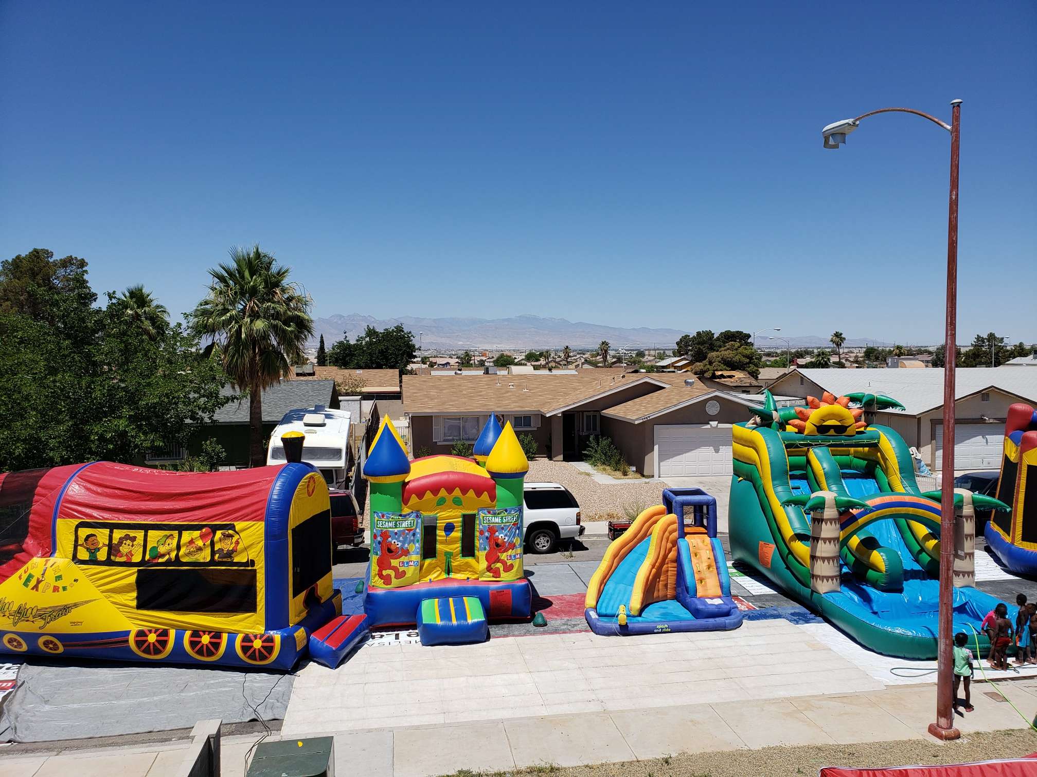 Bounce House Alquiler de toboganes de agua Toros Mecánicos Alquiler de mesas sillas y ropa de cama Fuente de chocolate Alquiler de carpas y calentadores Taco Party Máquinas de algodón de azúcar Alquiler de Hot dog Roller Carrera de obstáculos. En North las vegas,NV Las Vegas,NV Henderson, NV Clark county, NV White pine county, NV.